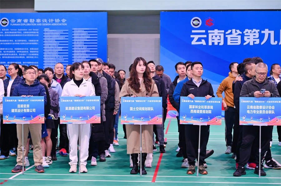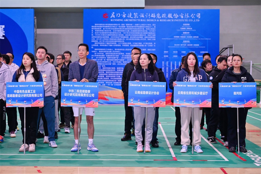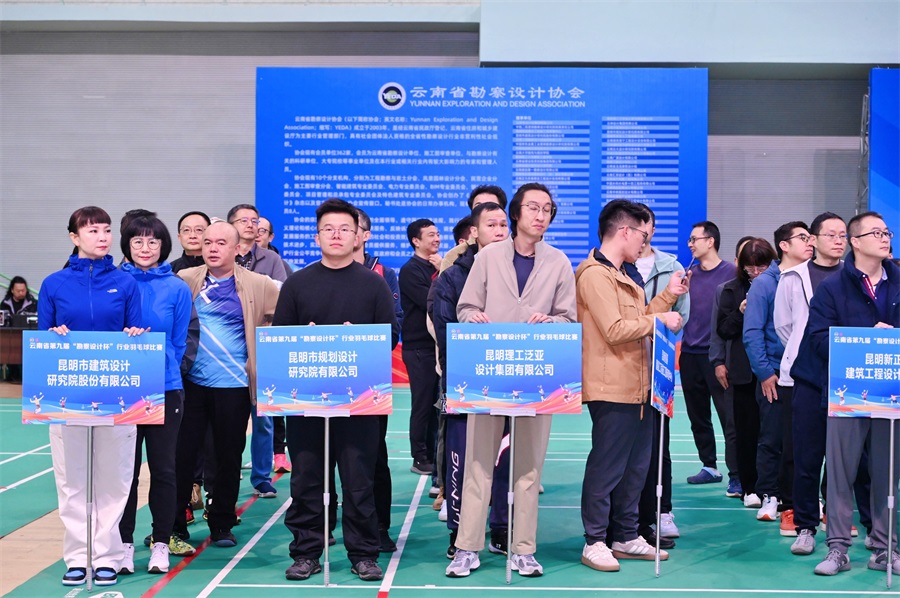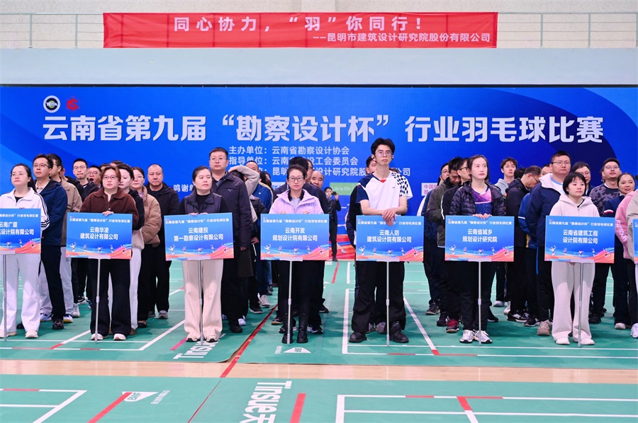 云南省住房和城鄉(xiāng)建設(shè)廳、云南省勘察設(shè)計協(xié)會、中鐵二院昆明勘察設(shè)計研究院有限責(zé)任公司、中國有色金屬工業(yè)昆明勘察設(shè)計研究院有限公司、中國水利水電第十四工程局有限公司、中國能源建設(shè)集團云南省電力設(shè)計院有限公司、中國電建集團昆明勘測設(shè)計研究院有限公司、云南興滇建筑設(shè)計咨詢有限公司、云南省水利水電勘測設(shè)計院有限公司、云南省設(shè)計院集團有限公司、云南省設(shè)計院集團勘察院有限公司、云南省交通規(guī)劃設(shè)計研究院股份有限公司、云南省建筑工程設(shè)計院有限公司、云南省城鄉(xiāng)規(guī)劃設(shè)計研究院、云南人防建筑設(shè)計院有限公司、云南開發(fā)規(guī)劃設(shè)計院有限公司、云南建投第一勘察設(shè)計有限公司、云南華凌建筑設(shè)計有限公司、云南廣廈規(guī)劃建筑設(shè)計院有限公司、云南工程勘察設(shè)計院集團有限公司、云南安泰建筑設(shè)計管理有限公司、大理市設(shè)計院有限公司、云南省勘察設(shè)計協(xié)會電力專業(yè)委員會聯(lián)隊、國家林業(yè)和草原局西南調(diào)查規(guī)劃院、國土空間規(guī)劃聯(lián)隊、昊滇建設(shè)集團有限公司、昆明官房建筑設(shè)計有限公司、昆明恒基建設(shè)工程施工圖審查中心、昆明理工泛亞設(shè)計集團有限公司、昆明市規(guī)劃設(shè)計研究院有限公司、昆明市建筑設(shè)計研究院股份有限公司、昆明有色冶金設(shè)計研究院股份公司、昆明新正東陽建筑工程設(shè)計有限公司等來自我省勘察設(shè)計界33支參賽隊的300余名運動健兒參加了儀式。