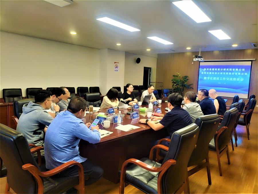 7月22日,四川省建筑設(shè)計(jì)研究院有限公司(以下簡稱“川建院”)副總經(jīng)理蔣勇杰,電氣總工程師、數(shù)字技術(shù)部部長胡斌,副總建筑師趙紅蕾,數(shù)字設(shè)計(jì)研究中心負(fù)責(zé)人李明燕,高級財(cái)務(wù)主管曹忠文等一行五人到訪公司,與公司信息及數(shù)字化轉(zhuǎn)型工作領(lǐng)導(dǎo)小組成員、數(shù)字化及信息化委員會(huì)成員、技術(shù)質(zhì)量部全體成員、其它職能部門正副職及各生產(chǎn)部門的管理團(tuán)隊(duì)約80人舉行了交流會(huì)。