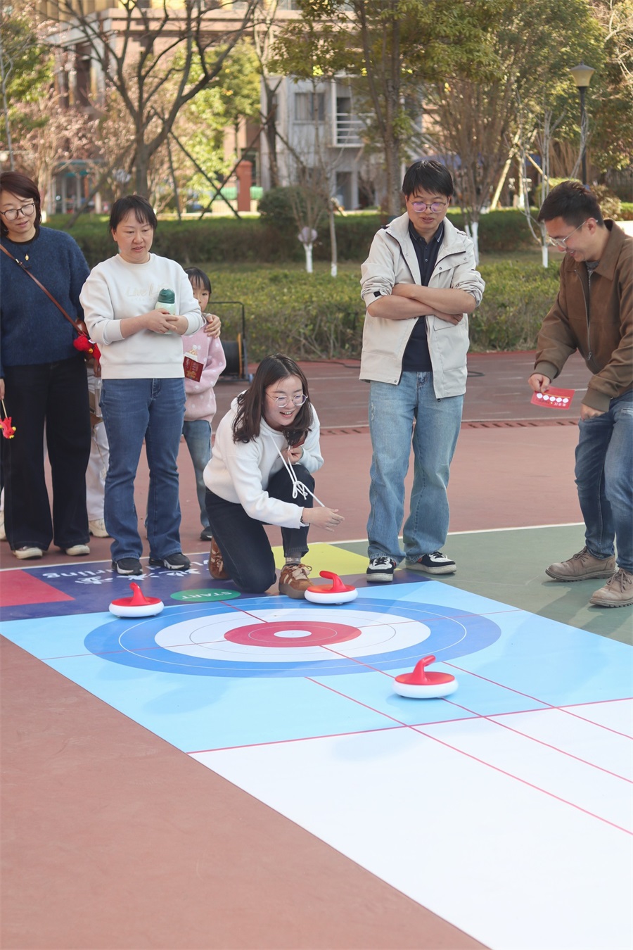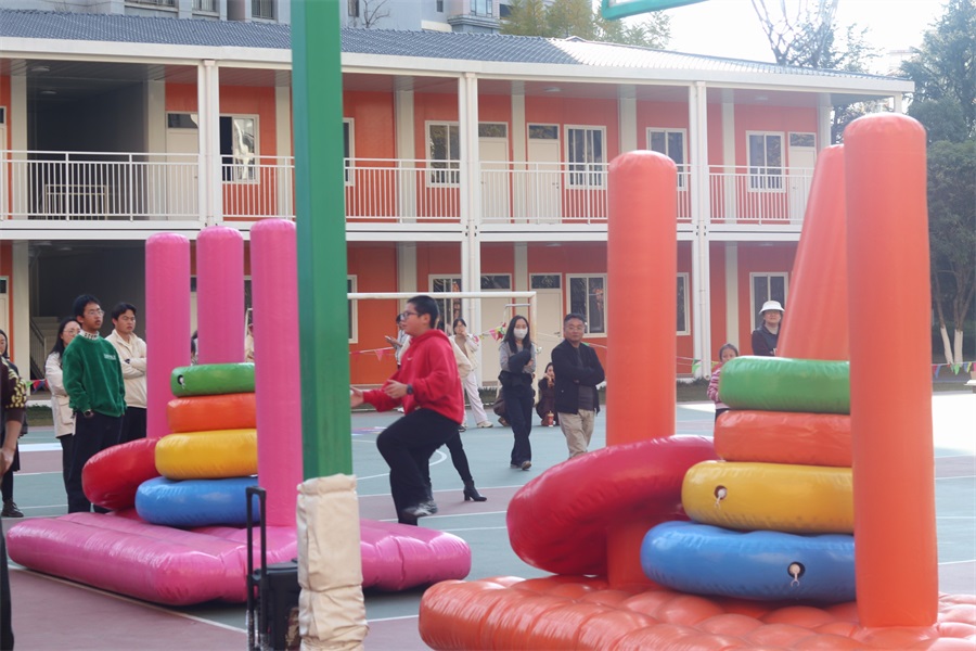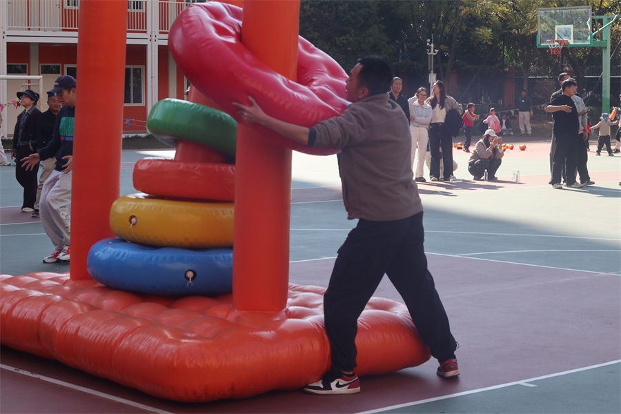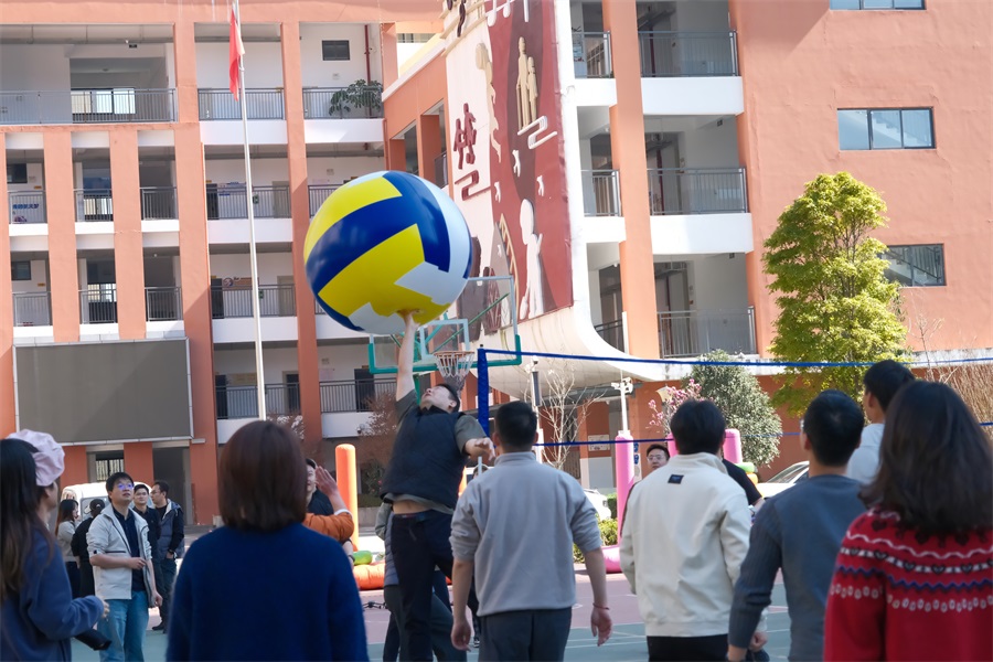 當(dāng)天下午,公司團委還為全體職工獻上了精彩的新春游園活動。游園活動分團體和個人兩類,團體類游戲為超級排球和大型漢諾塔,展現(xiàn)了熱情滿滿、活力四射的職工風(fēng)采;個人游戲包括高爾夫推桿、冰壺、套圈、飛盤、親子運球大作戰(zhàn)等。與往年不同的是,今年還進行了別開生面的“KAD”LOGO站隊航拍活動。職工及“院寶們”在中華小學(xué)的操場上玩的暢快淋漓,沐浴在新春歡快的氛圍里。