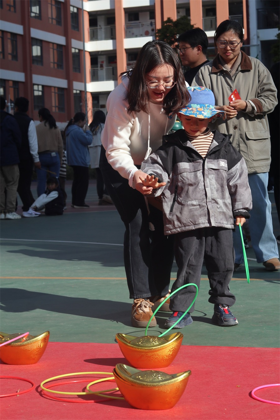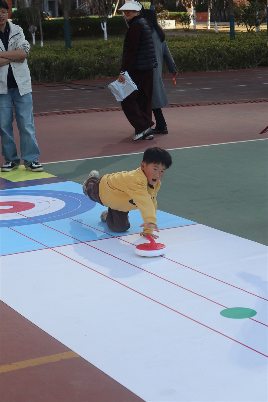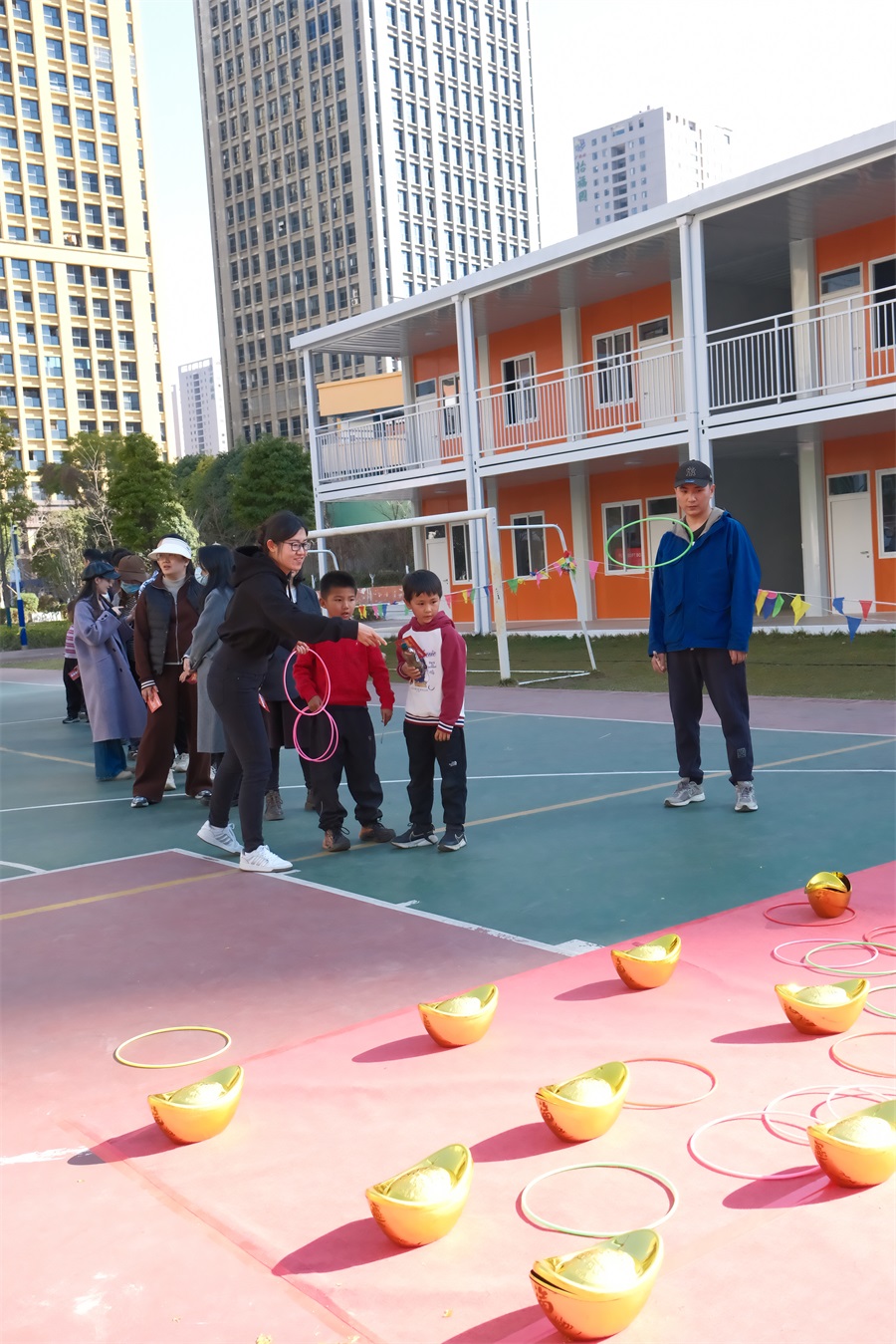 當(dāng)天下午,公司團委還為全體職工獻上了精彩的新春游園活動。游園活動分團體和個人兩類,團體類游戲為超級排球和大型漢諾塔,展現(xiàn)了熱情滿滿、活力四射的職工風(fēng)采;個人游戲包括高爾夫推桿、冰壺、套圈、飛盤、親子運球大作戰(zhàn)等。與往年不同的是,今年還進行了別開生面的“KAD”LOGO站隊航拍活動。職工及“院寶們”在中華小學(xué)的操場上玩的暢快淋漓,沐浴在新春歡快的氛圍里。