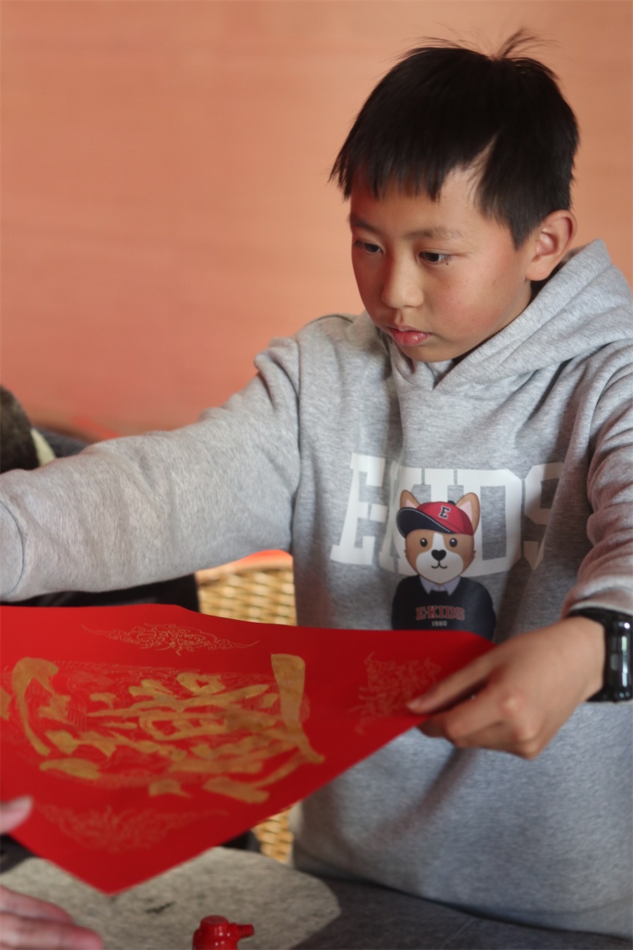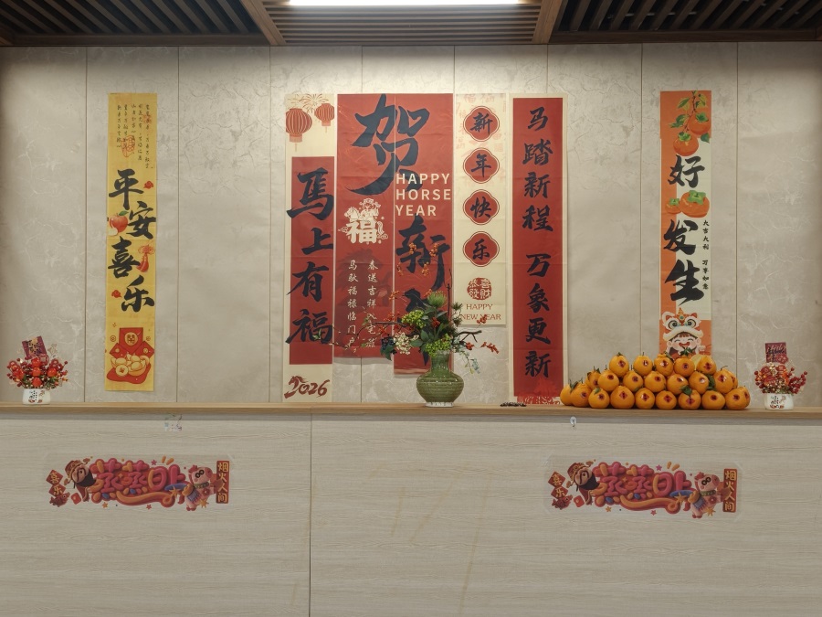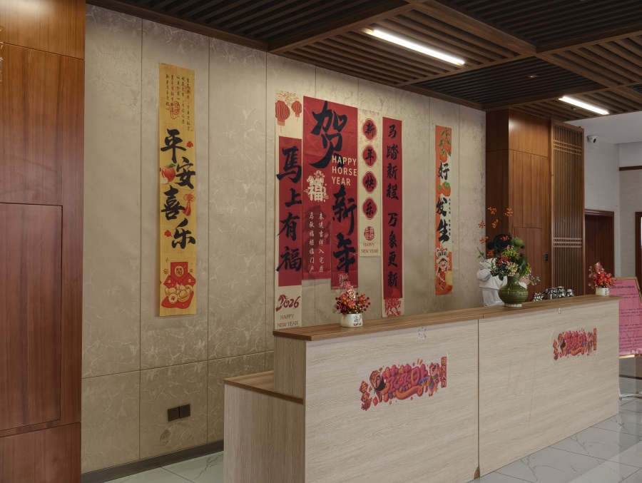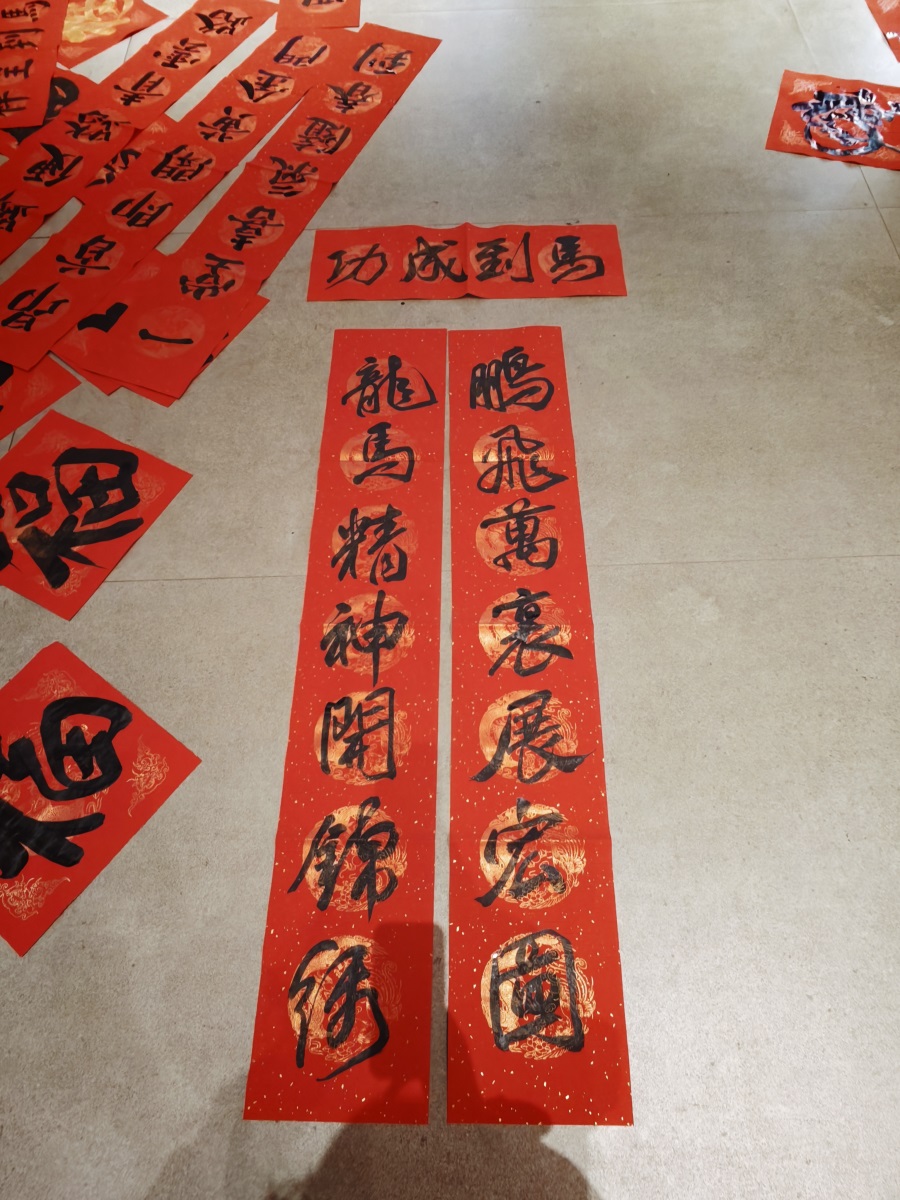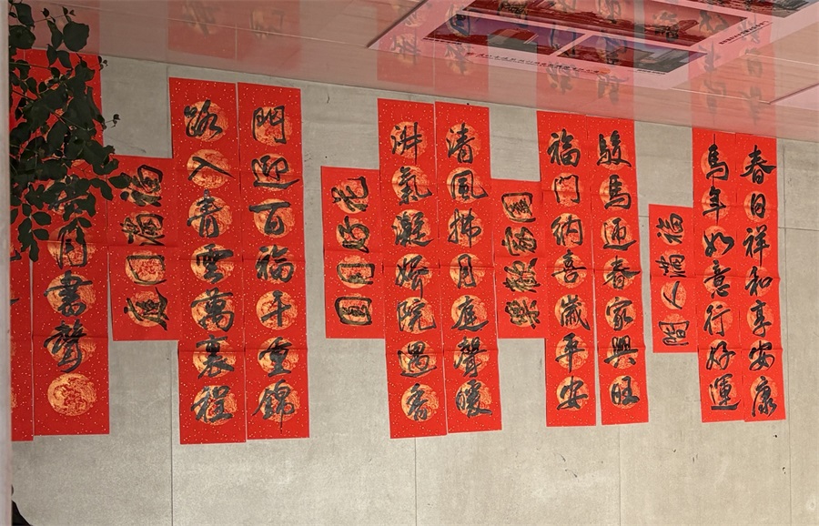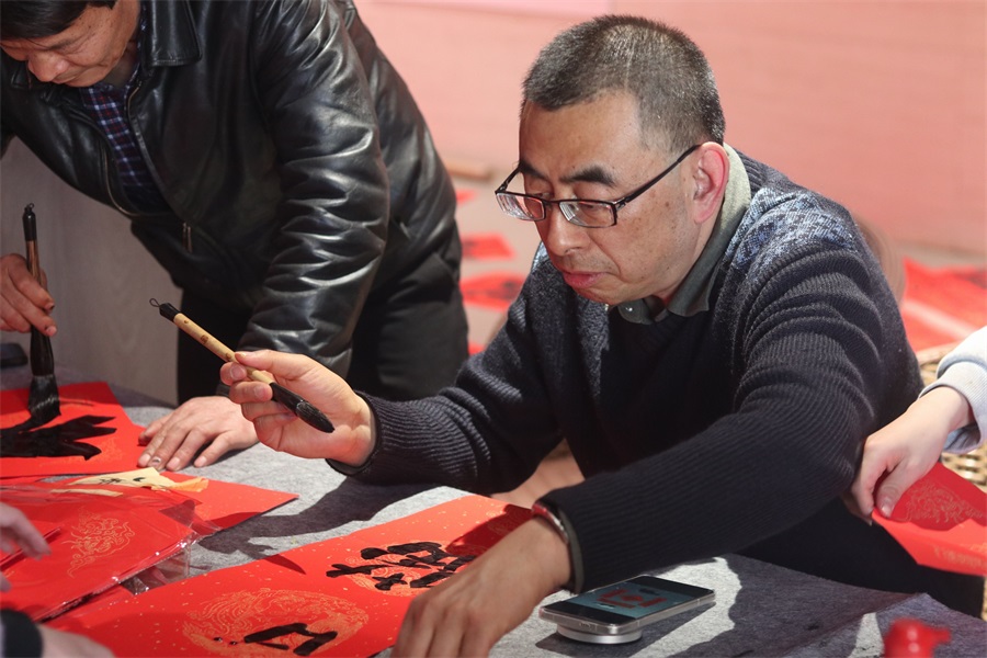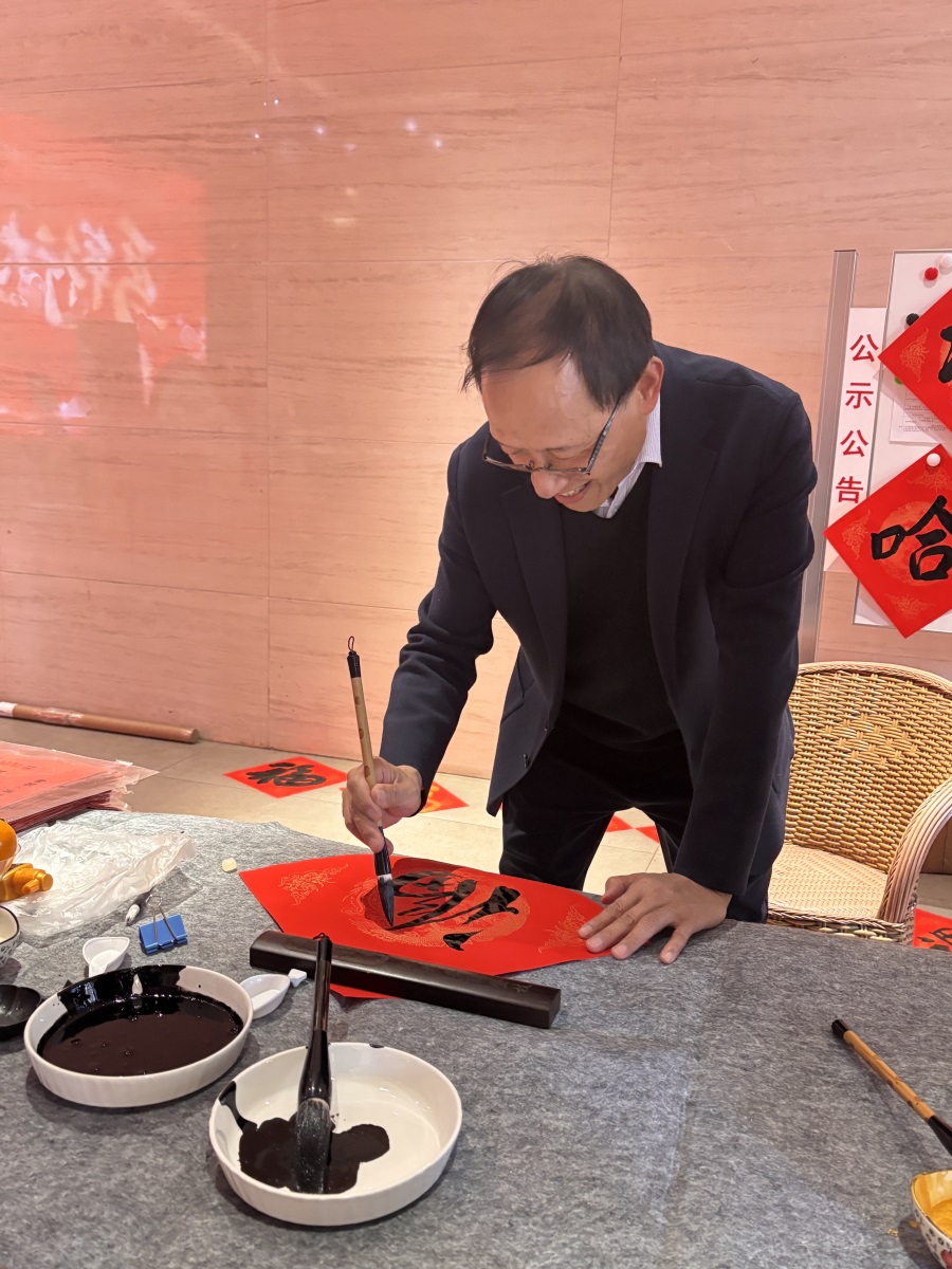 值得點贊的是,公司書法愛好者還為大家現(xiàn)場書寫春聯(lián)和福帖,職工“院寶”也參與了書寫活動,儼然氣派的“書法家”。董事長楊寶璋還走進書寫場地,現(xiàn)場揮毫?xí)鴮憽案YN”。