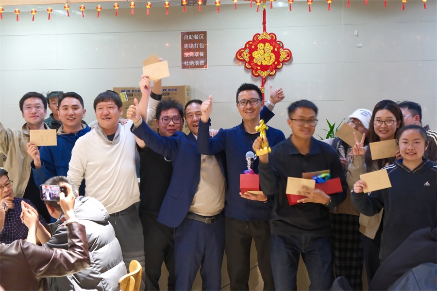 晚宴上,公司全體員工把酒言歡,互訴衷情,互致吉祥,期以來年大運、高歌猛進。抽獎臺上,獎項頻頻產(chǎn)生,彩頭迸發(fā)。三等獎、二等獎、一等獎、特等獎漸次推進,高潮迭起,激動人心。一年來的奔走辛勤、苦樂亢進,皆付談笑中!