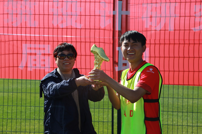 頒獎儀式后,舉行了以35歲以下隊員組成的“青年隊”和35歲及以上隊員組成的“元老隊”對陣的友誼賽。元老隊突破強勁,進攻有條不紊,步步緊逼;青年隊也不甘示弱,隊形布置縝密,防守嚴密,整場比賽既充分體現(xiàn)了雙方水平,又秉承“友誼第一”的宗旨,元老隊率先頭球破門,青年隊立馬追平比分,最終以11;11的比分打平。