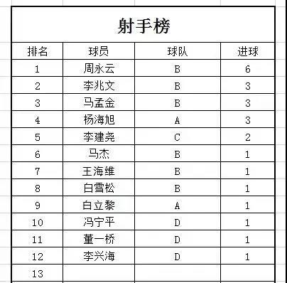 賽場另一邊,雙方苦戰(zhàn)40分鐘,D隊以3:2險勝C隊。具體積分及球員進(jìn)球情況見附表。